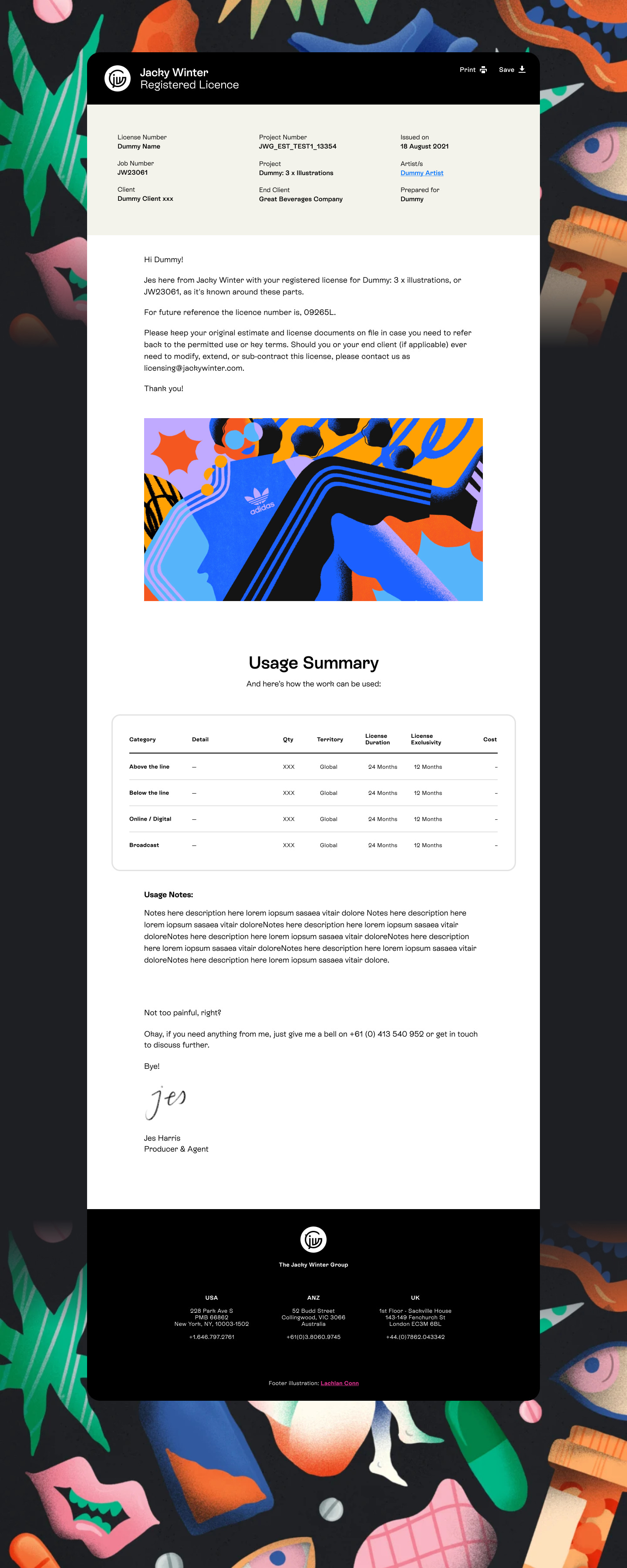 Our paperwork helped us close deals and get taken seriously. We always got great comments on it. It was a point of pride that everything we did and send looked as good as the artists we were fortunate enough to represent. It was a huge point of difference at that time, and as the agency grew we continued to invest in what was now called JWOS and expanded its features based on the needs of our growing team.