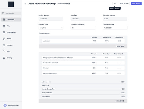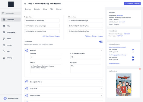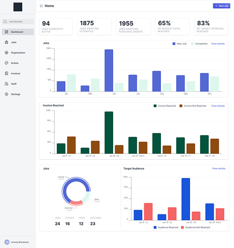 The main issue was that there was no quoting app that natively supported commissions, which was our second reason for building JWOS to begin with. It's not like we could just whack a line item on a bill and be done with it. Especially when it came to the increasing complexities of jobs we were doing, where one line item might have to get split out to multiple parties. With dozens of jobs on the go across, spreadsheets and manual labour was just not going to cut it.