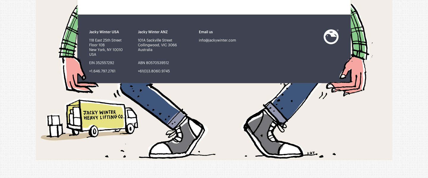 To that end, it was really important that every interaction with Jacky Winter was also designed well. We were talking to and selling to Designers, and I wanted to ensure we were all speaking the same language, visually at least.